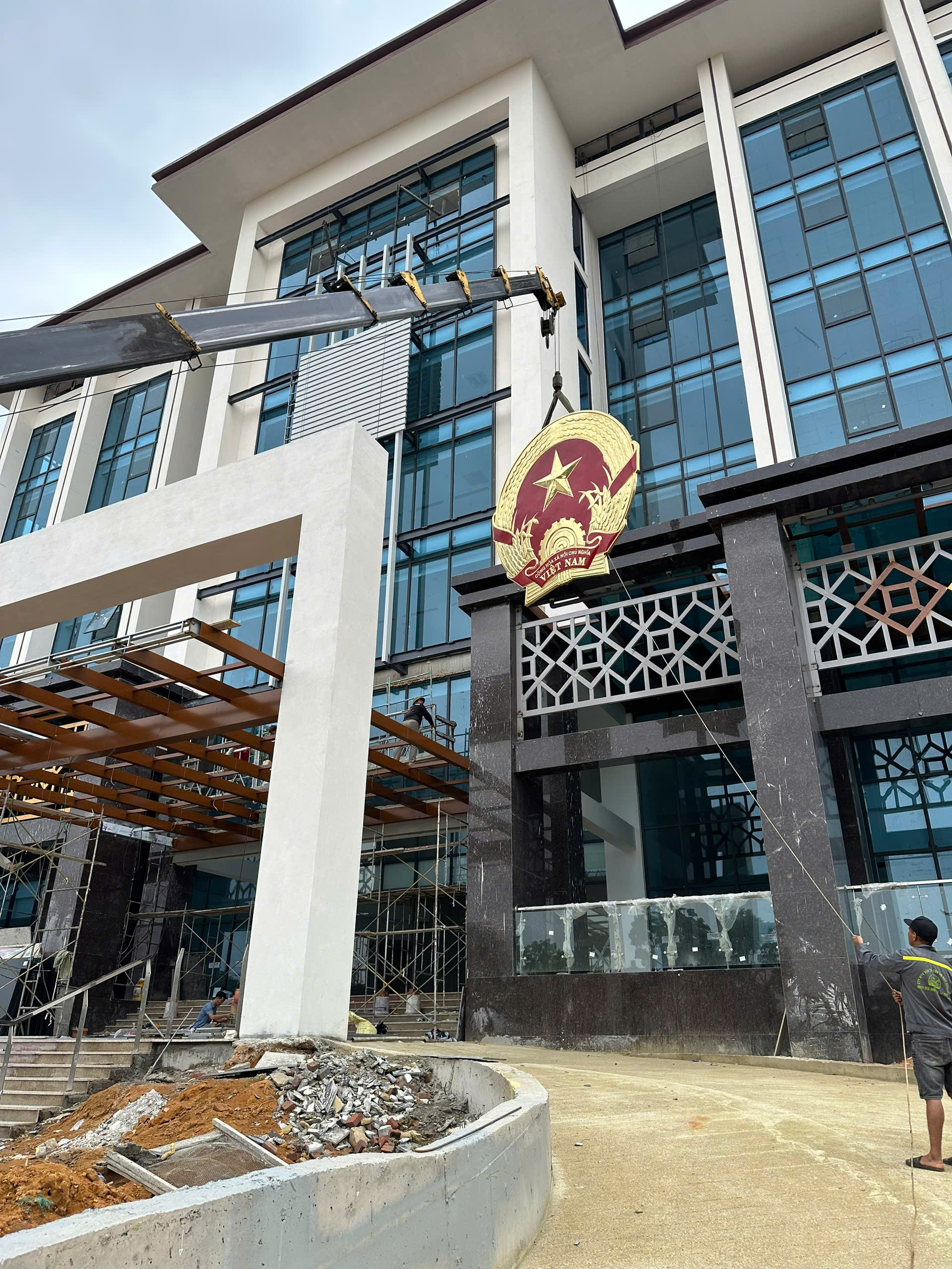 Quốc huy 3m x 3m sau khi an vị không chỉ góp phần làm nổi bật hình ảnh cơ quan mà còn mang đến niềm tự hào cho tập thể cán bộ nơi đây.