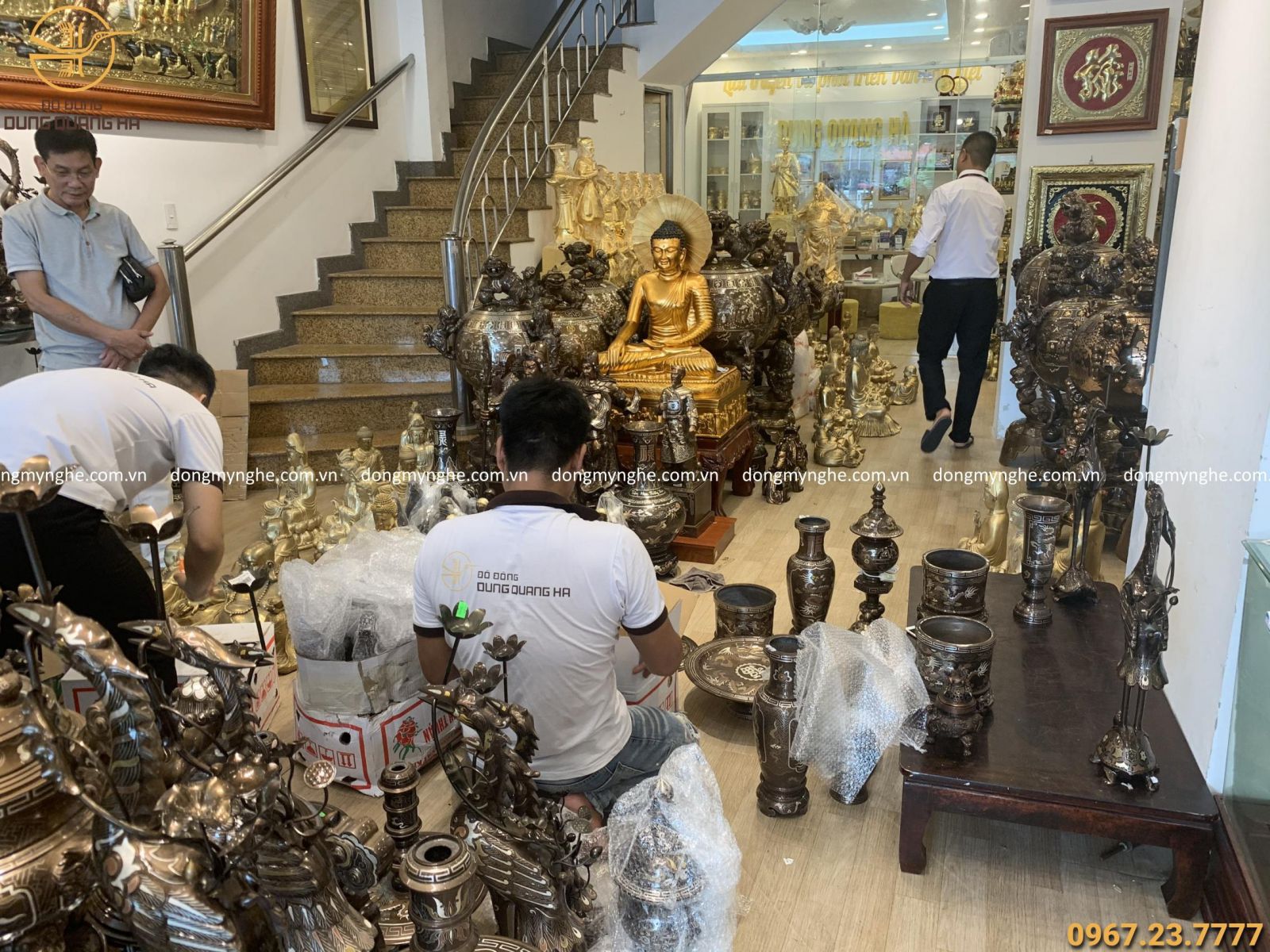 (7/8) Khách hàng tận tay lựa chọn từng sản phẩm đồ thờ cúng phù hợp kích thước và nhu cầu thẩm mỹ qua sự tư vấn chu đáo, nhiệt tình của các nhân viên cơ sở Dung Quang Hà tại chi nhánh 663 Giải Phóng.
