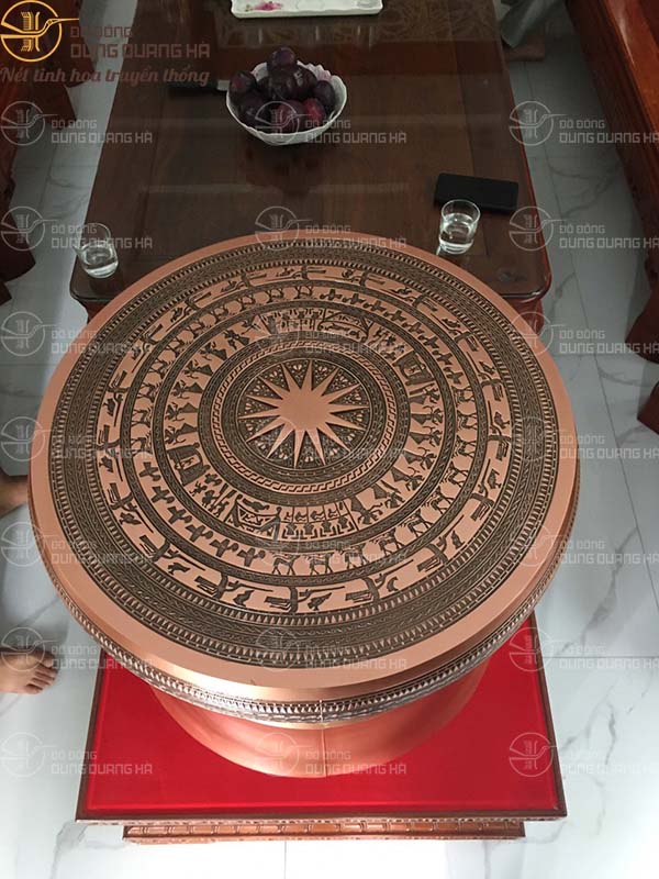 Vẻ tuyệt vời của trống đồng được trình bày trên những hoa văn, họa tiết trên bề mặt trống đồng. Trống đồng với thể được làm từ những nguyên liệu bằng đồng khác nhau. Nhưng trống đồng lần này giao cho khách được làm bằng đồng đỏ nguyên chất, các họa tiết thì được nghệ nhân từ chúng tôi làm cho màu để nổi trội hơn. Chỉ với hai màu đỏ và đen nhưng cũng đã toát lên được vẻ đẹp từ phía trống đồng. Đặt trống đồng trong nhà đã khiến tăng tính thẩm mỹ cho ngôi nhà, song song với hút ánh sáng tốt, xua đuổi tà khí, có tới thịnh vượng và sự hòa thuận hạnh phúc trong gia đình.