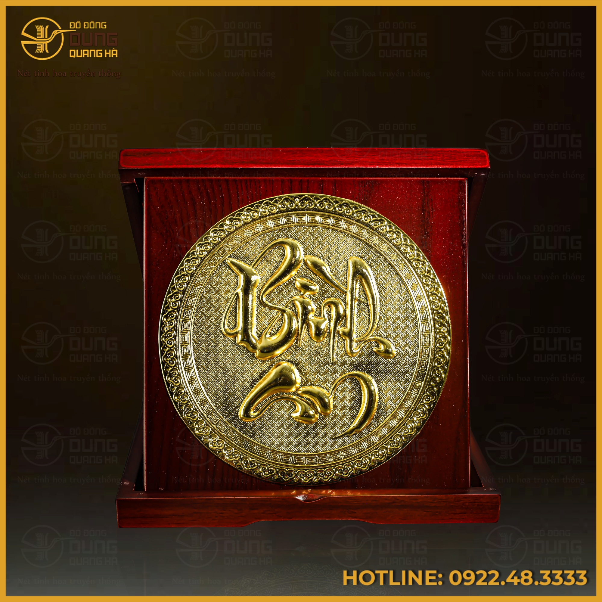 Tranh chữ thư pháp Bình An bằng đồng mạ vàng là món quà đặc sắc, giàu ý nghĩa phong thủy được ưa chuộng - Tác phẩm có tại đồ đồng Dung Quang Hà. Hãy nhanh chóng đến với chúng tôi để sở hữu những sản phẩm cao cấp với nhiều ưu đãi hấp dẫn!