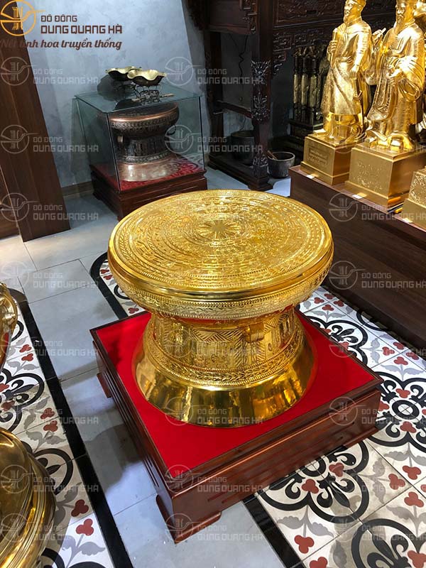 Trống đồng được người nghệ nhân chạm khắc từng nét chi tiết. Mỗi khía cạnh trên mặt trống đồng đều là những hình ảnh sinh hoạt thường ngày của người dân và thiên nhiên và sở hữu lại phổ biến ý nghĩa phong thủy đến gia chủ. Trống đồng đều được mạ vàng càng làm tăng giá trị của nó. Cửa hàng chúng tôi đã hỗ trợ chuyên chở tới nhà từ bạn hàng.