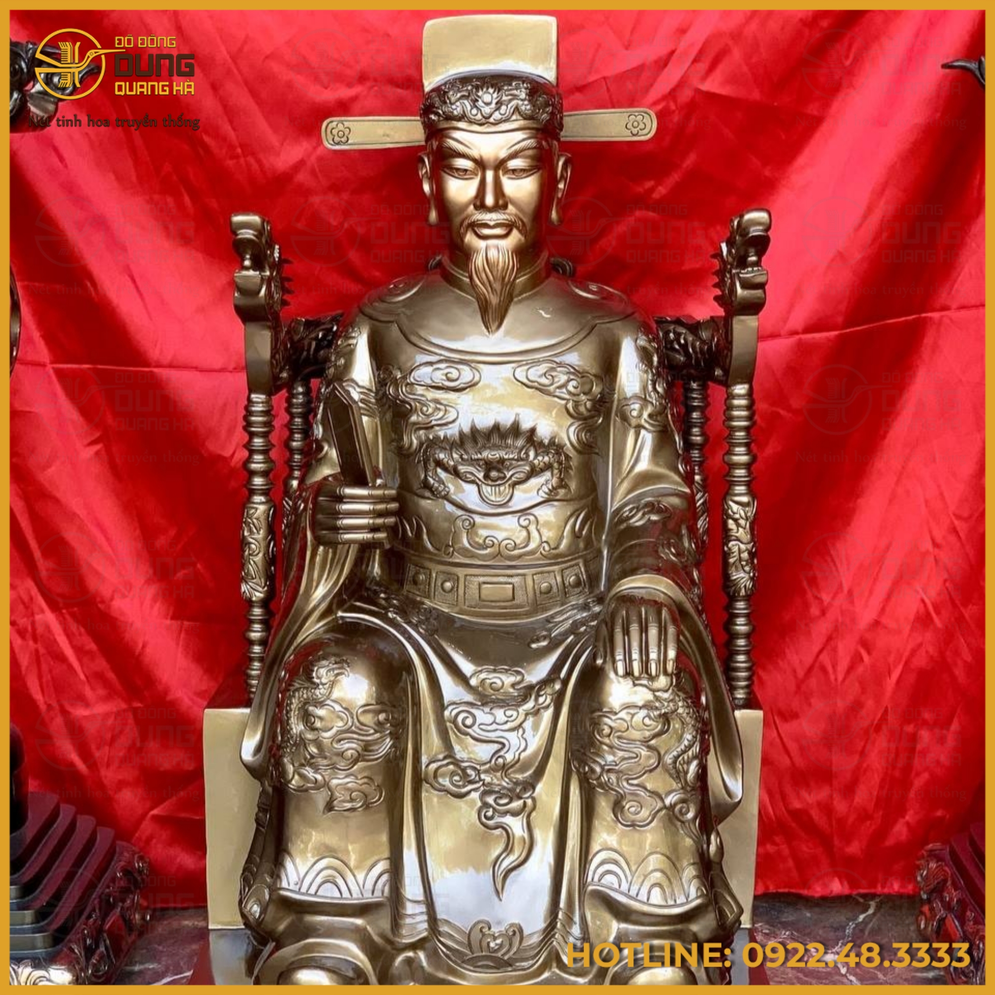 Bức tượng cụ tổ mang một sắc thái đồng giả cổ vô cùng thâm trầm và quý phái. Tông màu nâu ánh vàng kim loại này là thành quả của kỹ thuật làm màu tinh xảo trên chất liệu đồng đỏ nguyên chất. Màu sắc toát lên vẻ đẹp cổ kính, trang nghiêm, không hề chói lóa. Sắc thái đồng ấm áp này giúp tôn lên sự linh thiêng và bề thế của pho tượng trong không gian thờ cúng.